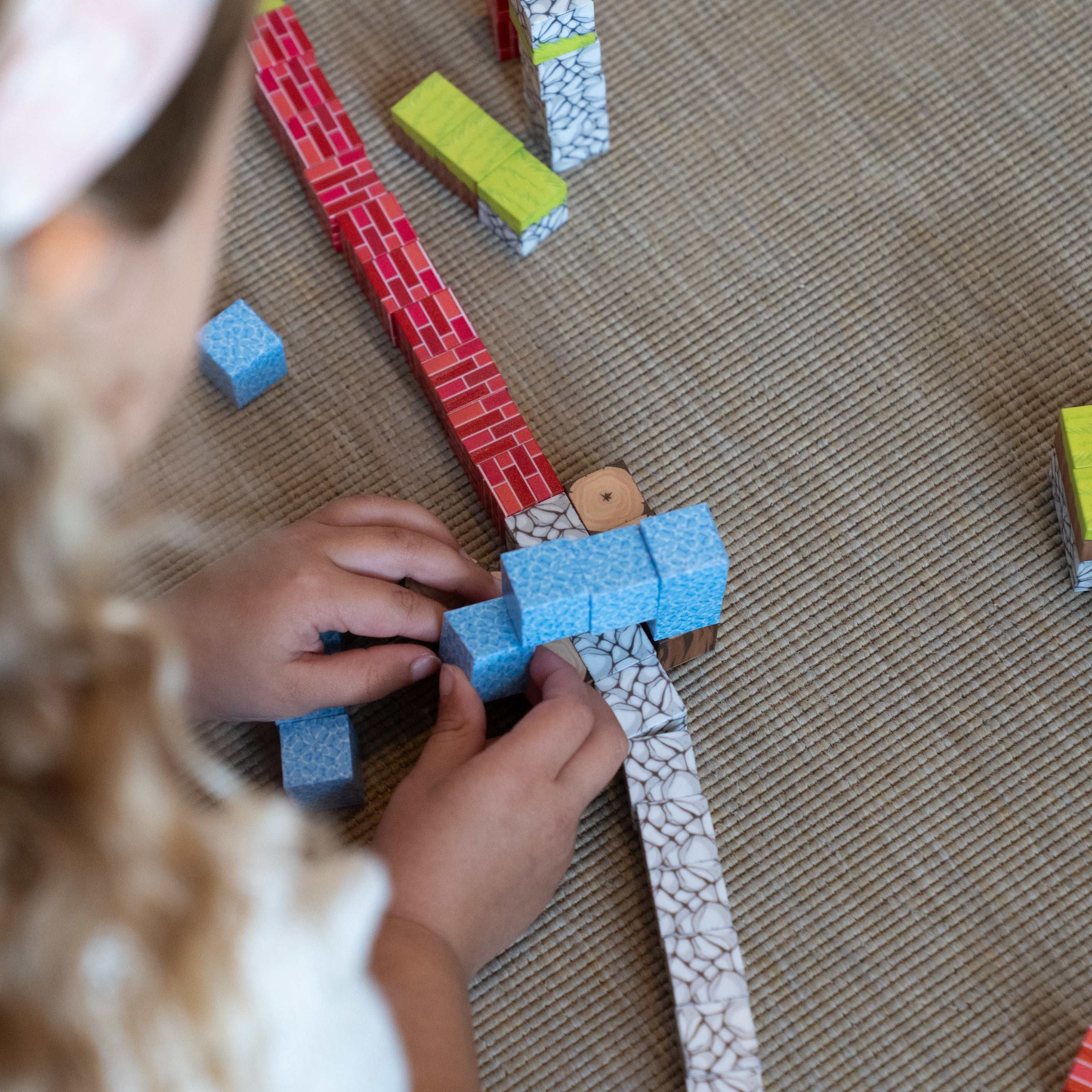 Man kan eksperimentere, prøve af og finde på kreative løsninger imens legen bare bliver bedre og bedre. De udvikler samtidig barnets forståelse for former, rummelighed og matematik. Ja, det er jo som Minecraft, men med hænderne 😊