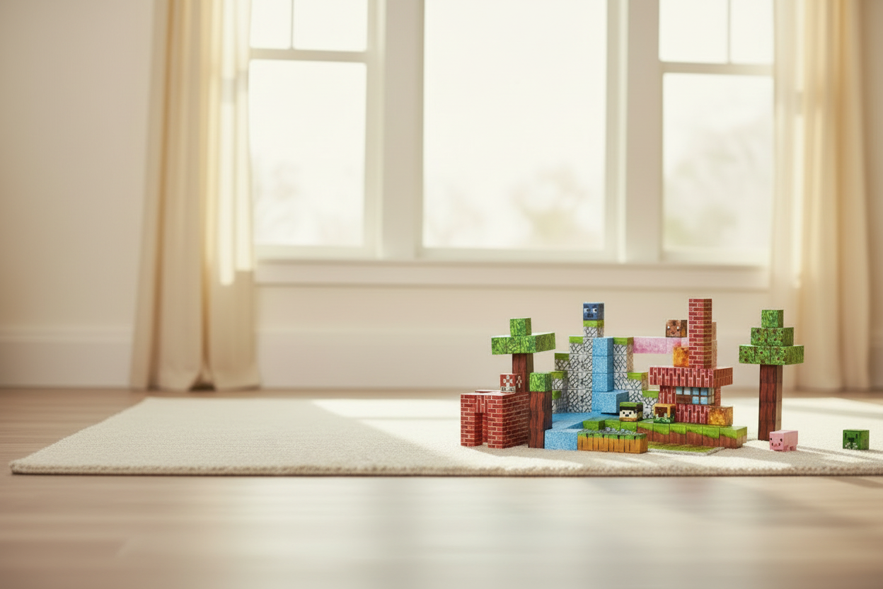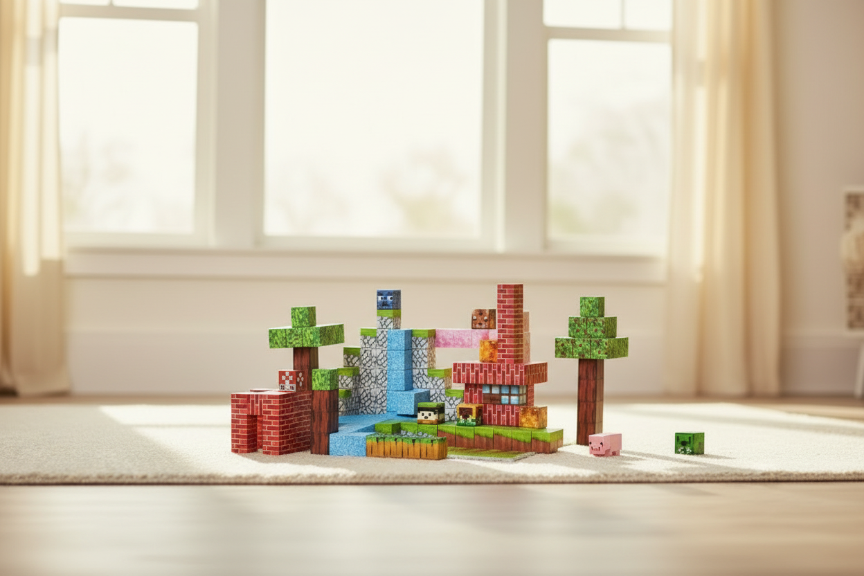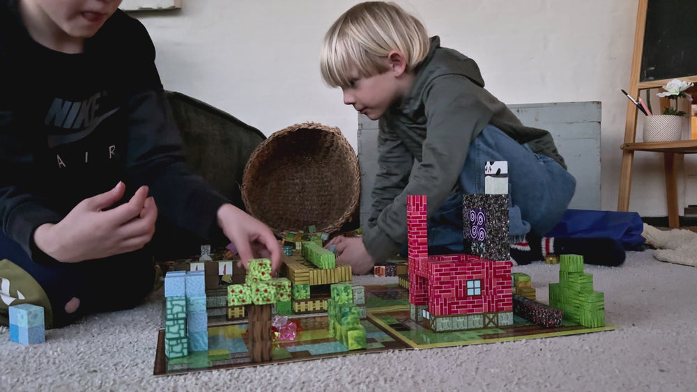 Magnetiske byggeklodser med stærke magneter i alle hjørner. De kan kombineres frit og bygges med igen og igen. En verden i firkanter, kendt fra minecraft - bare i virkeligheden.