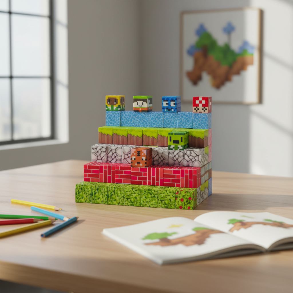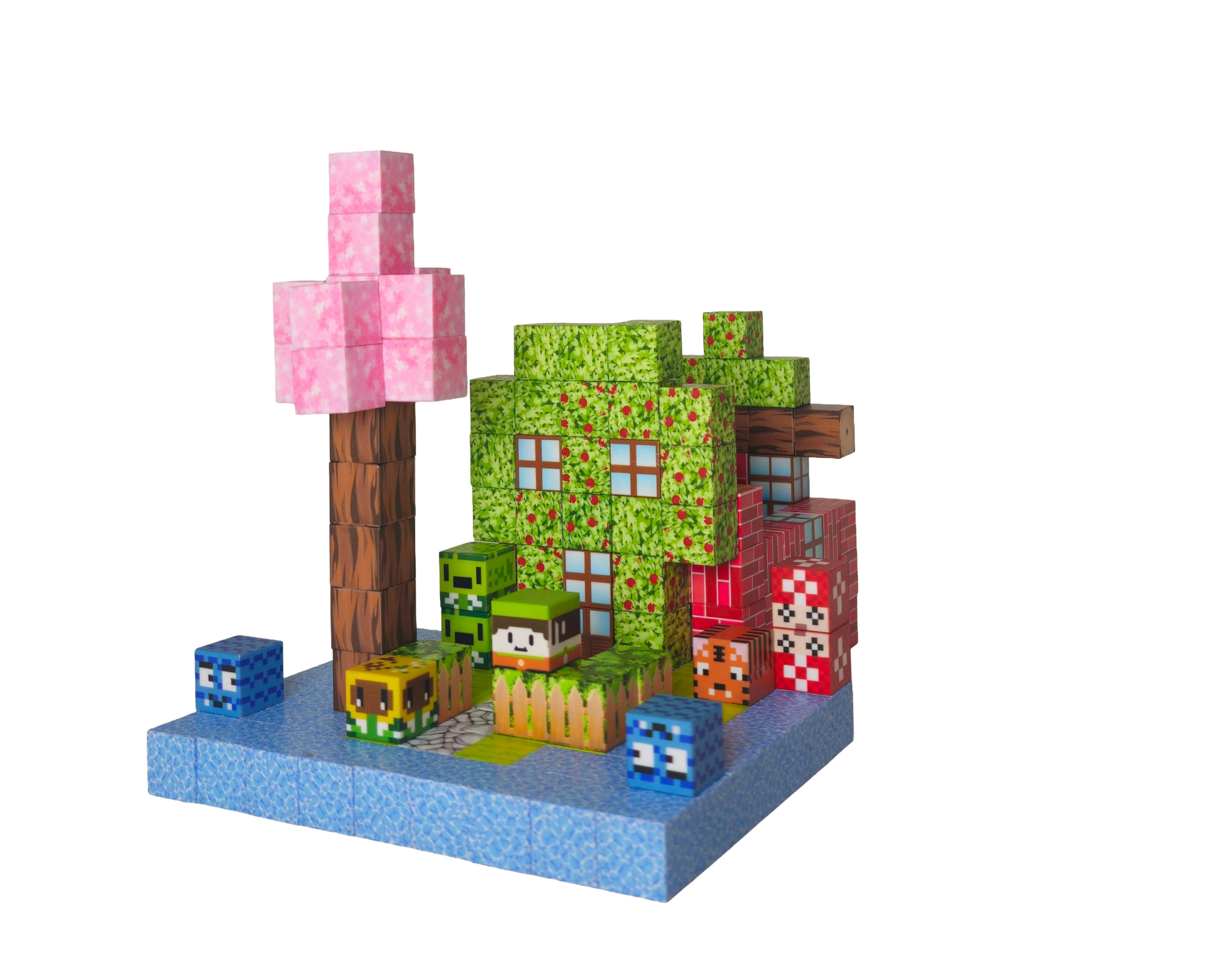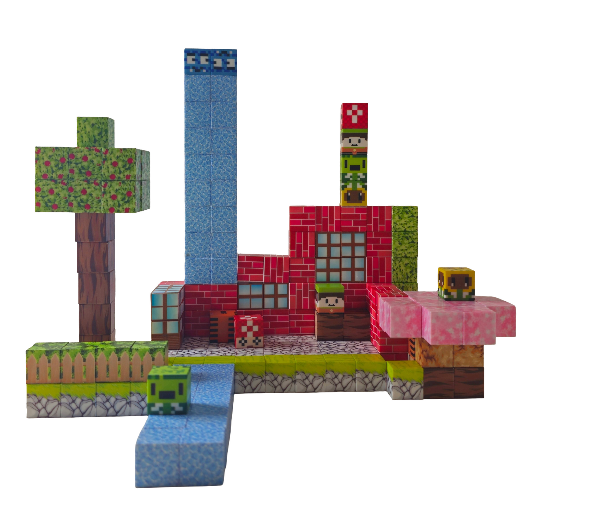 Med Den første rejse får dit barn en startpakke fyldt med 100 magnetiske klodser, inspireret af Minecraft-spillet. De kan forvandles til alt fra huse og træer til sjove figurer og eventyrlige landskaber. Magneterne gør det nemt at bygge, tage fra hinanden og starte forfra – igen og igen. Startpakken er den perfekte introduktion til det magnetiske byggeunivers.